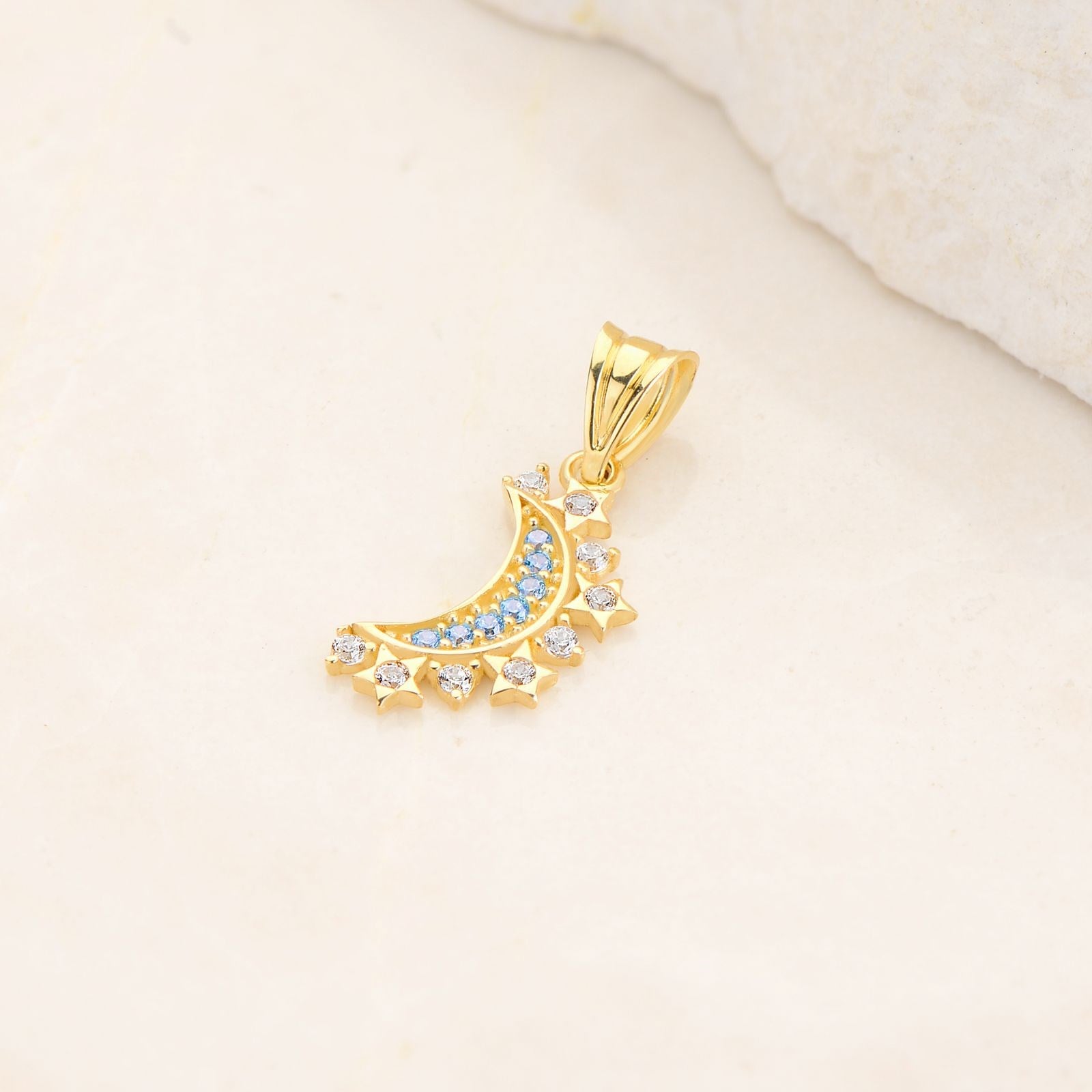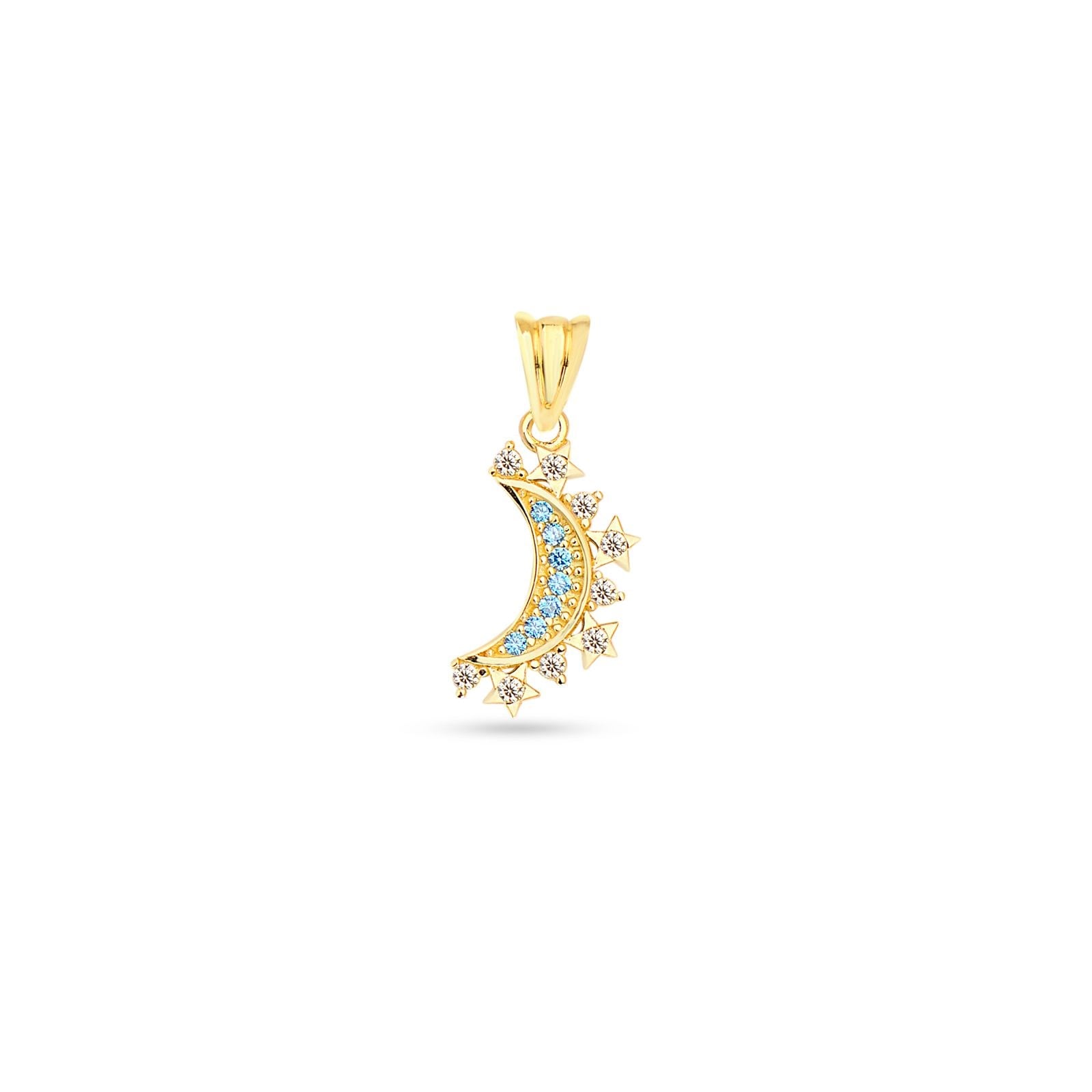 14 Ayar Altın Taşlı Hilal Kolye Ucu